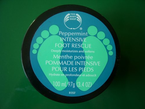 The Body Shop Peppermint Intensive Foot Rescue - 3.56 oz : Soften and revive your rough, tired feet with a skin-smoothing moisturizer that also cools and deodorizes--a customer favorite since 1985! Best for all skin types. * Community Trade peppermint oil promotes a cooling sensation to leave feet feeling refreshed and helps to combat odor. * Community Trade cocoa butter is an excellent moisturizer that melts at body temperature. * Sweet almond oil is rich in essential fatty acids that help to restore skin's moisture barrier. * Grape extract is a fruit acid that has skin smoothing and gentle exfoliation properties.